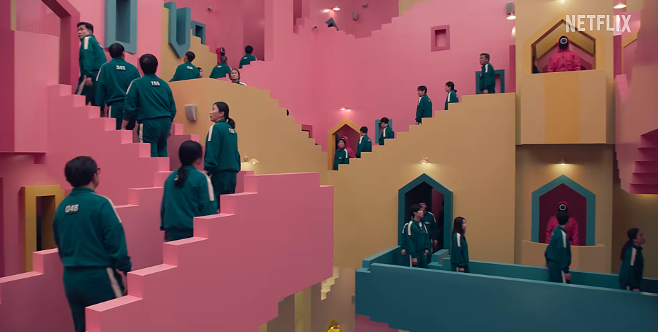 초록색 운동복, 분홍색 유니폼, 기하학 가면 등 ‘오징어 게임’에 등장하는 시각적으로 뚜렷한 요소들은 시리즈를 대표하는 상징으로 자리 잡았습니다.