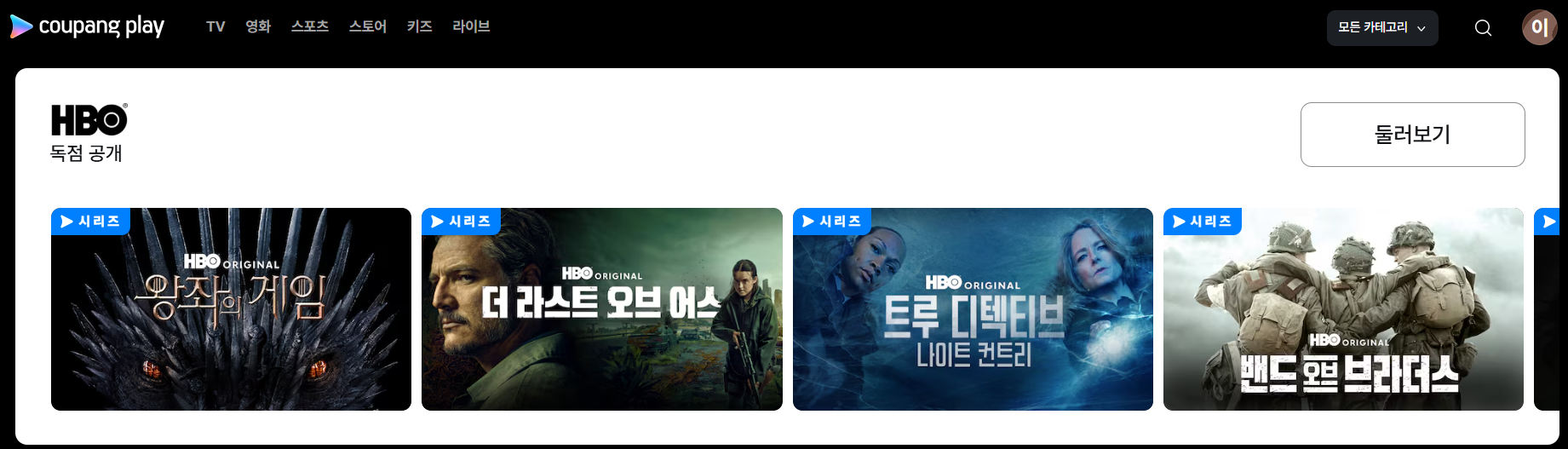 쿠팡플레이는 HBO 인기 시리즈들을 국내 독점으로 공개하고 있어요.