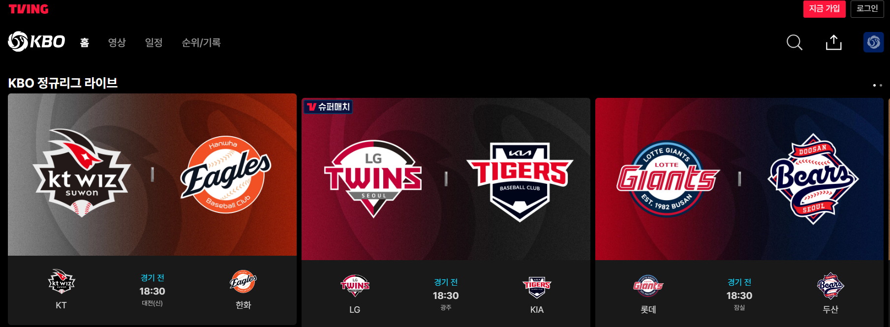 티빙이 KBO 리그 중계를 갖고 있음에도 불구하고, 다른 채널에서도 볼 수 있어서 ‘완전한 독점’은 아닌 셈이에요.