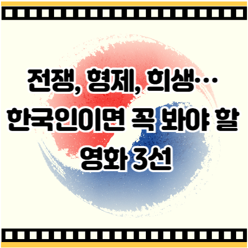- '태극기 휘날리며', '인천상륙작전', '고지전'은 전쟁과 희생을 다룬 대표적인 한국 영화입니다.