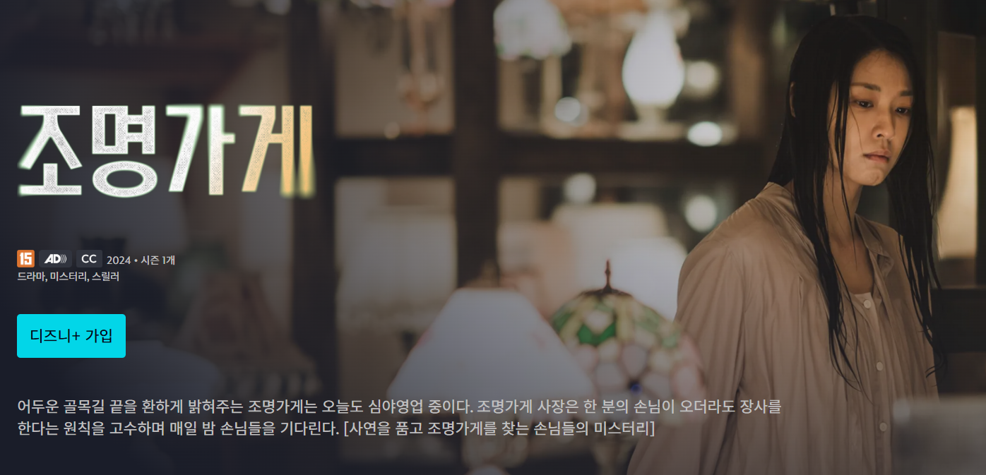 조명가게는 2024년 12월 4일 디즈니+에서 공개된 8부작 미스터리 심리 드라마로, 강풀 작가의 동명 웹툰을 원작으로 제작되었습니다.