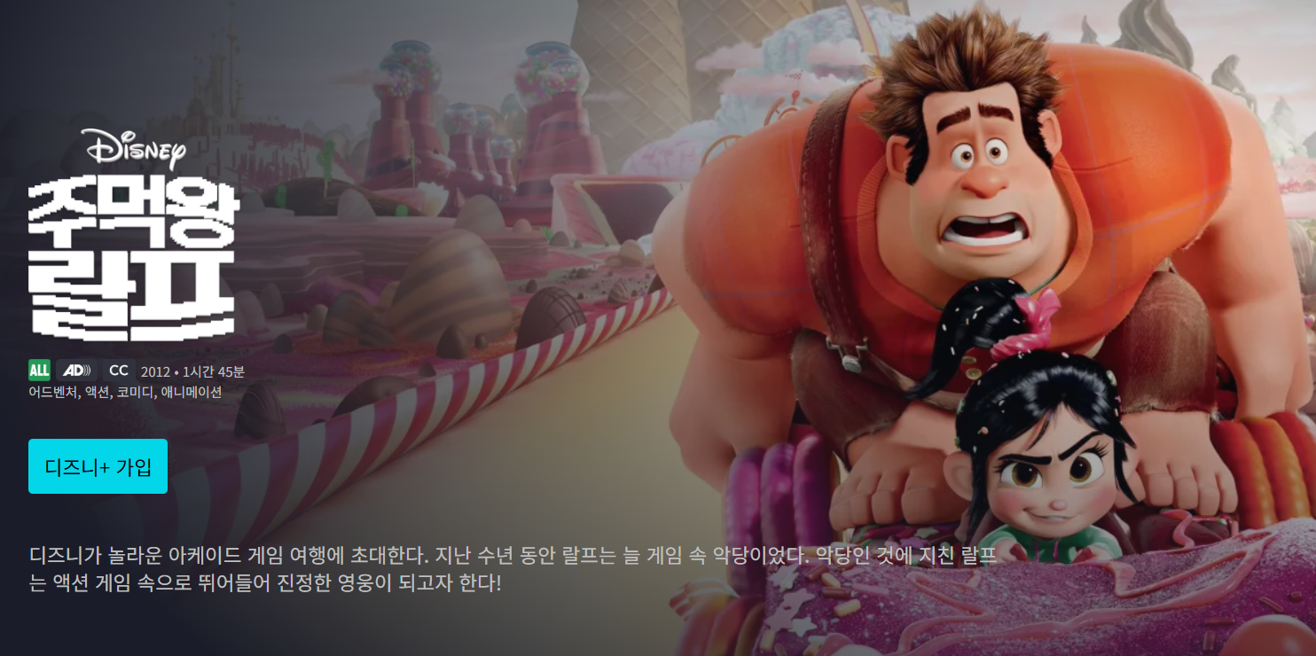 아케이드 게임 속 악당 캐릭터 랄프는 늘 파괴자 역할만 맡아 외롭고 소외감을 느낍니다. 진정한 영웅이 되고 싶었던 랄프는 게임 세계를 넘나드는 모험을 떠나고, 그 과정에서 친구들을 만나며 자신만의 가치를 발견하게 됩니다. 게임 속 다양한 캐릭터와의 유쾌한 에피소드, 그리고 랄프의 성장기가 흥미진진하게 펼쳐집니다.