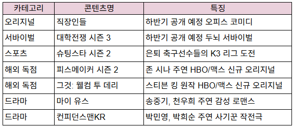 올 하반기는 각 OTT 플랫폼의 개성과 강점을 명확히 보여주는 콘텐츠 대전이 될 것입니다.