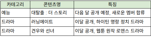 이처럼 풍성한 콘텐츠들 속에서 여러분의 취향에 맞는 OTT를 선택하는 것이 중요합니다. 더 자세한 정보나 다른 OTT 플랫폼들의 소식이 궁금하시다면 언제든지 문의해 주세요!