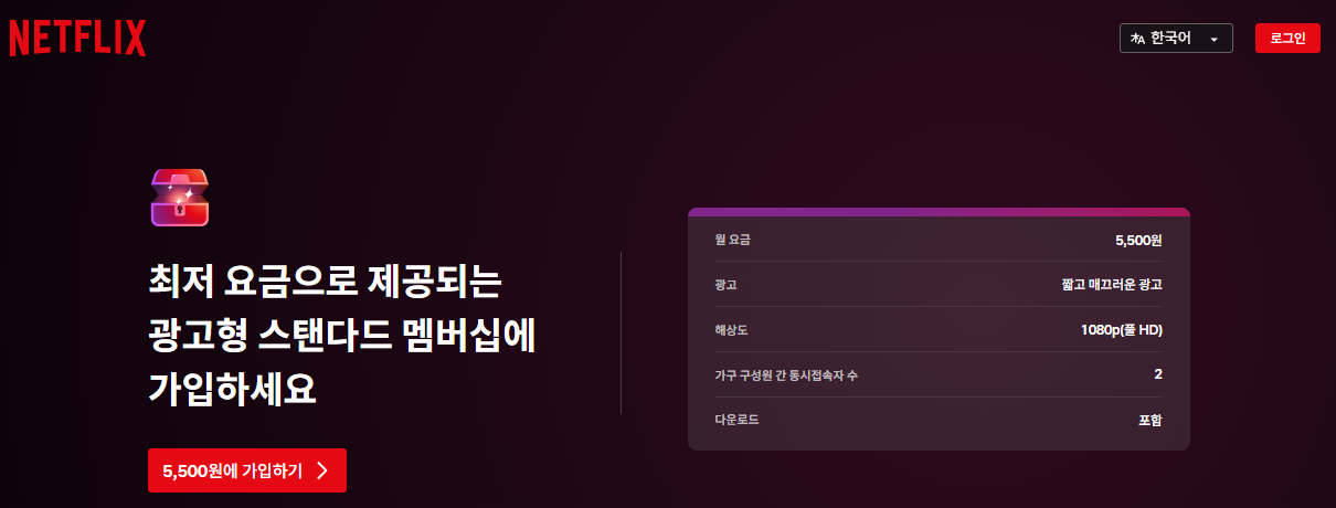 - 기존 스탠다드 요금제(월 13,500원)의 40% 수준인 월 5,500원에 광고형 요금제를 도입했습니다.